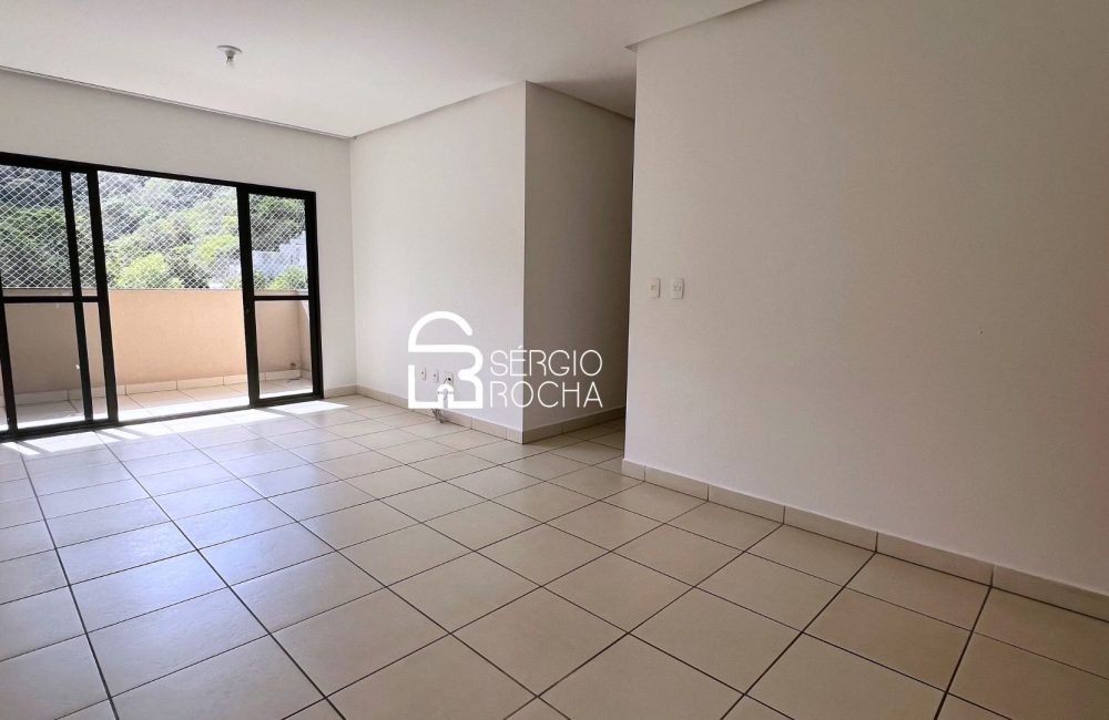 Apartamento para alugar com aproximadamente 94 m², composto por 3 quartos, sendo uma suíte. A sala de estar conta com sacada, proporcionando ótima iluminação e ventilação natural.